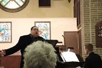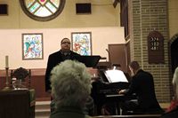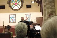 Where else can a measly $15(!) buy you not only a hot home cooked meal but an hour of wonderful entertainment afterwards? This year we were treated to pianist Kris Epps and tenor Ashley Foot. You may remember how last summer Kris and Ashley, partners in life & in song, filled in for Connie one sunday. Well this evening we were treated to a wonderful hour of gospel and show tunes. The rafters rang! |