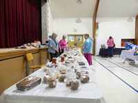 At 15:00h on the Saturday the selling stopped. Once the dust had settled and the clean-up accomplished and the monies counted the total was a whopping $4240 plus for the scouts and the church!! Many, many thanks to Michele Mckenzie (working & arranging & organizing from California!!) and Sue & Kevin Mckenzie from all their work here at Summerlea. Big thanks to those who worked setting up everything and staffed the kitchen and the scouts for their work setting up the dining room and serving the 'customers'. And, of course, to the artisans who rented tables and worked at selling the fruits of their labours. |