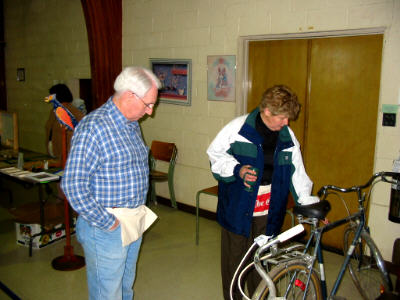 from 9 AM to 2 PM on a cool, sunny day. On Friday we caught stalwarts Marion Golden, Janet Smart, Undeg Edwards and Kathy Worsnip setting up and pricing the stuff, but we did not catch them on camera. On Saturday we did catch some of the folks at the sale, shown below. Our thanks to all those who organized, set up and put away, and staffed the tables for this event, the proceeds of which go to the Outreach Committee for continuing community work. |