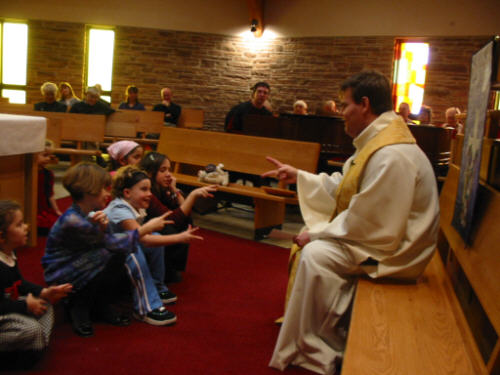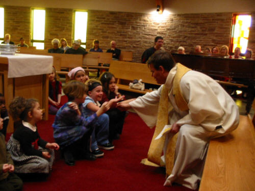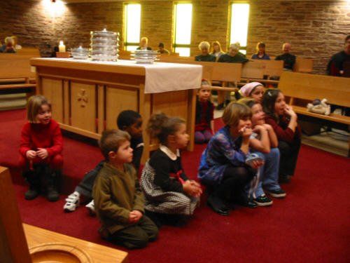 engenders a sense of togetherness. The Lakeside Heights Baptist Church website is at www.lakesideheights.org. Following are a few photos taken before the service and during the childrens' story time. |