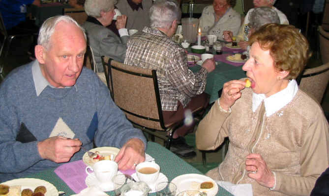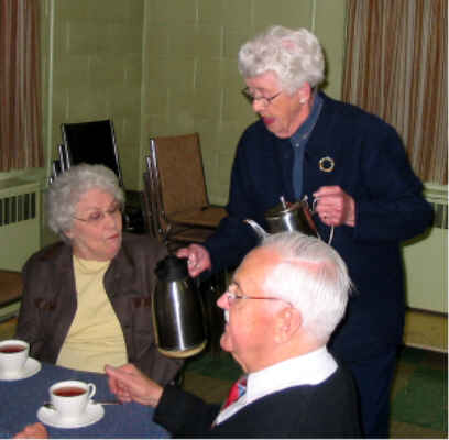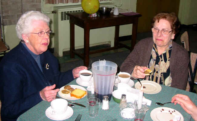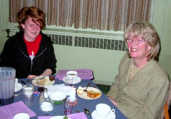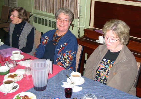 consumption of the prerequisite cups of "wine". The supper consisted of copious quantities of pot-luck provided by the participants, followed by equally generous portions of dessert and tea or coffee. Following the supper the assemblage moved to the sanctuary to read responsively Psalm 22, then to divest the chancel of all ornamentation, in memory of the Cross. The ornaments to be re-installed Easter Sunday in memory of the Resurrection. Following are a few photos of the participants. The shots were taken unposed during supper, so some candid-camera situations may be anticipated. Also, there are a lot of large photos, so they may take some time to download. |