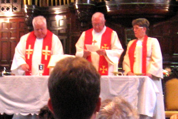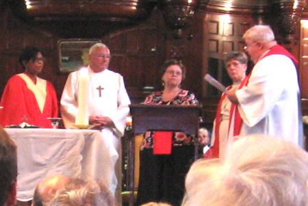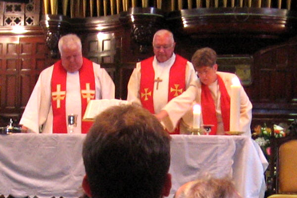 The table at the front held the bibles and chalices to be presented to the ordinands. |