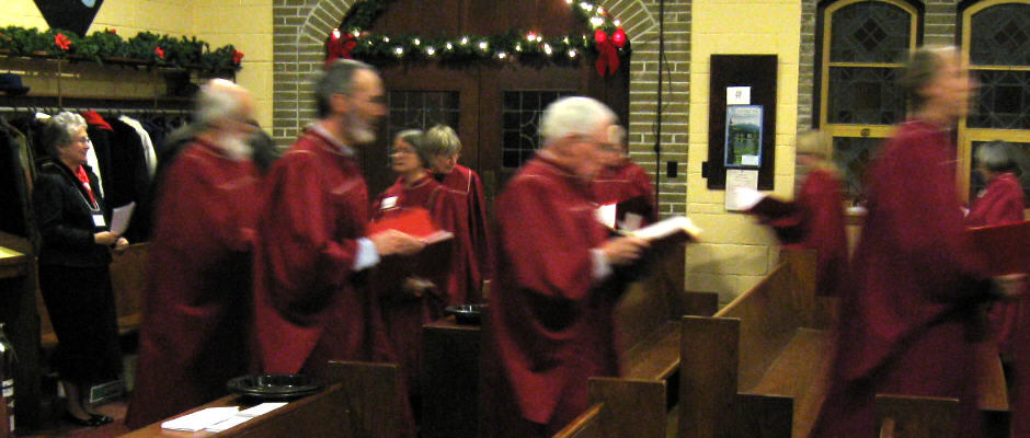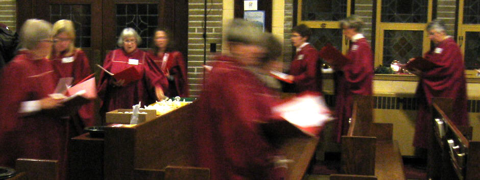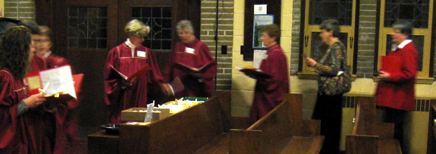 visitors from the surrounding community. The Summerlea choir under the direction of Summerlea music director Connie Osborne included some musical friends plus Kate Miller on trumpet and John Osborne on flute. Soloists in the Christmastide Carol were Selga Vitols, Carolyn Osborne, Michèle Bitauld, Marion Golden and Mel Cockhill. In the Nativity Tale the soloists were Barbara Moffat and Janet Smart. Greeters were Dale Krujelsis & Lewis Guynan and Marg & Bill Lynn. Other participants included: Rev. Howard Clark: Opening Scripture Sentence Jacob Osborne: Welcome and Greetings Ruth Heim: Call to Worship Ruth Crabb: Prayer of Approach Joan McCauley: A Christmas Prayer of Confession Vince Nudo: Old Testament Lesson Alayna and Jusin Roy, Peter Maklan: New Testament Lesson Rev. Howard Clark: Introduction of Guest Speaker Margie Ann MacDonald: Guest Speaker Kate Miller and John Osborne: Offertory Music (O Holy Night) Sinclair Harris: Offering Dedication Rev. Howard Clark: A Christmas Prayer Caroline Legault: Lighting of the Candles Ruth Heim: Benediction and overall organization. The service was followed by a time of fellowship and refreshments in Acadia Hall. Thanks to Ruth Heim for organizing this event and to the Serendipity ladies and friends for arranging and providing the fellowship setting and refreshments. Following are some (not very good) photos (pickable to view a larger version). |