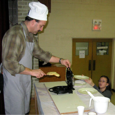 maple syrup and ham, with juice, coffee and tea to quench the thirst. Our thanks to Bryan and all those who helped to set up, cook, serve, clean up and put away. Following are a few photos of the event. You can pick a small photo to see a larger version, then pick Back on your browser to return to this page. |