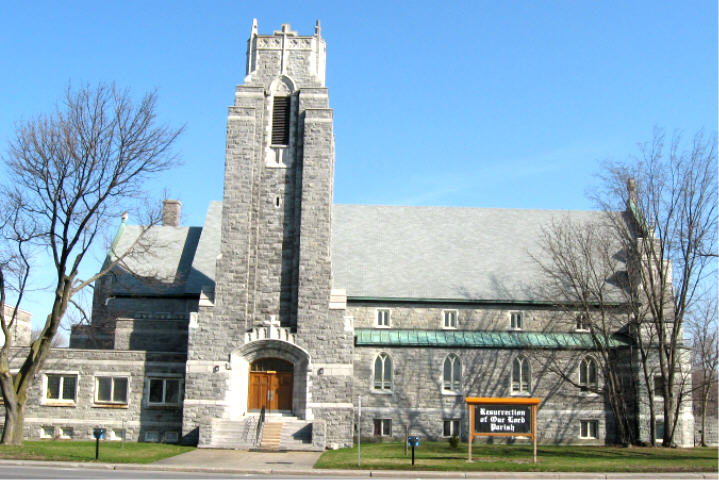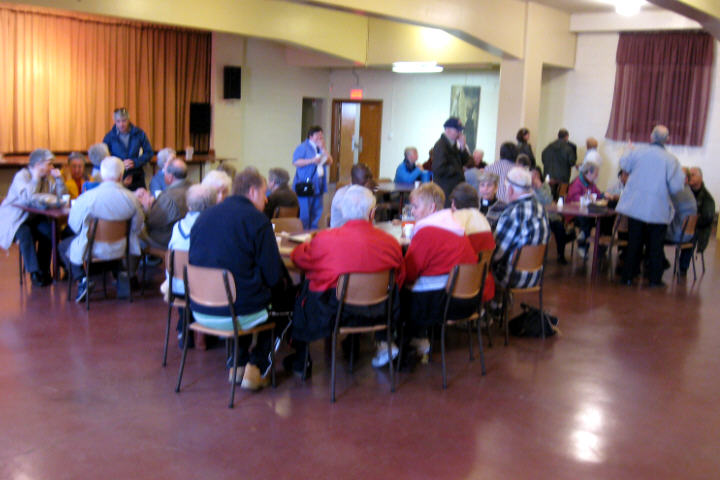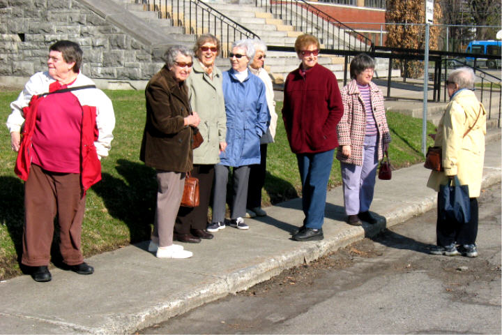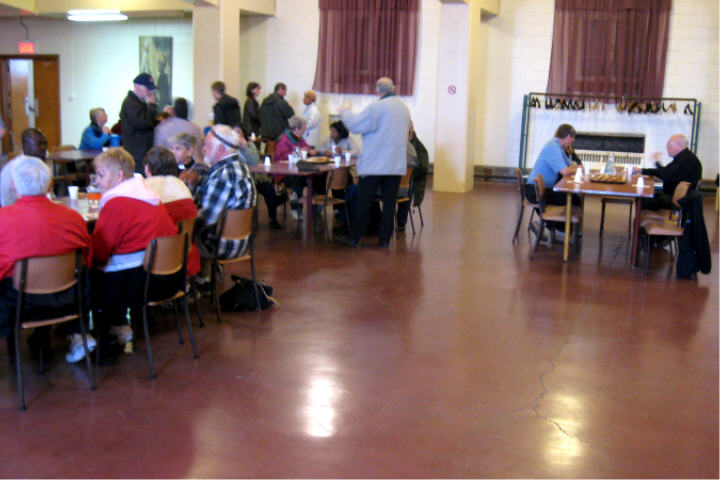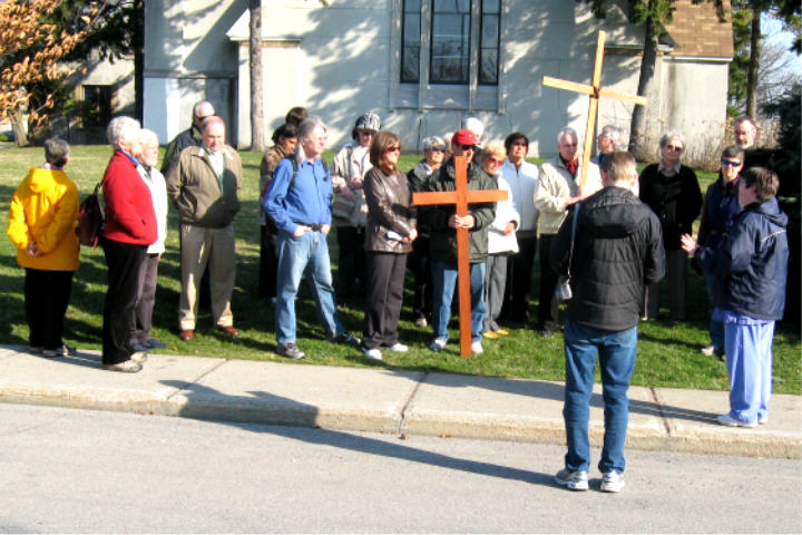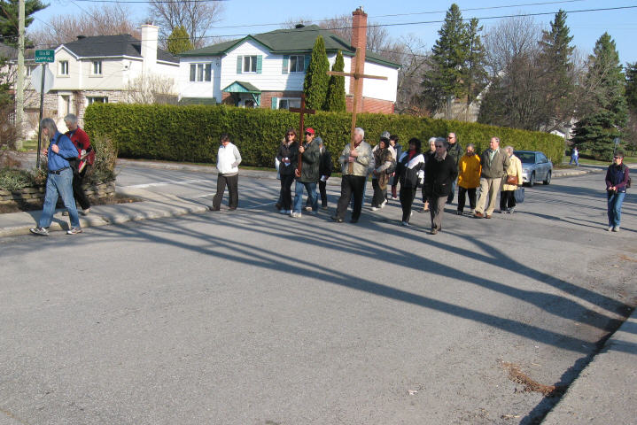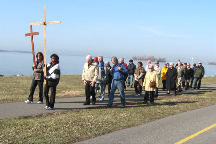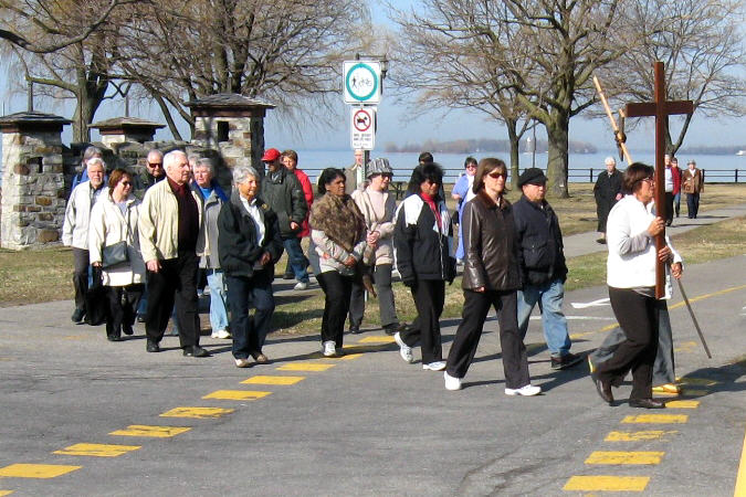 Resurrection of Our Lord church was somewhat idyllic. On arrival at Resurrection church the walkers met the group who started at St. Stephen's church in eastern Lachine, and a brief service was held, followed by Hot Cross buns and water in the hall. |