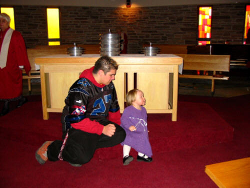engenders a sense of togetherness. The Lakeside Heights Baptist Church website is at www.lakesideheights.org. Following are a few photos taken before the service and during the childrens' story time. |