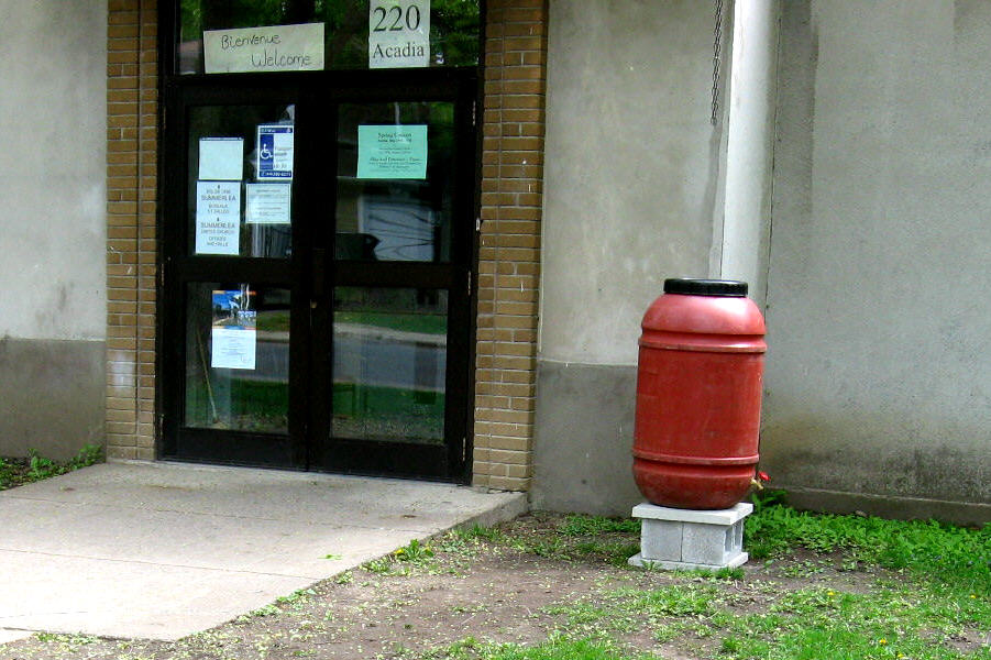 Chauffage Des thermostats programmables aux salles sont programmés pour baisser la température la nuit quand il n'y a personne aux salles. On baisse la température au sanctuaire en semaine quand ce n'est pas utilisé. Le coupe froid a été remplacé aux portes Acadia et aux portes du sanctuaire. De l'isolation réfléchissante a été installée a l'arrière des radiateurs à la salle principale (Acadia). Il parait que ça a amélioré le confort de la salle, alors on espère faire de même aux autres radiateurs à l'avenir. On a augmenté le profondeur d'isolation aux greniers accessables (environs 25% de l'aire des toits) de 3 pouces à 12 pouces. Aux murs facent à salles chauffées on a installé 3 pouces d'uréthane giclée couverte de contre-feu giclée. On a étudié le chauffage géothermique, mais ce n'est pas compatible avec le chauffage hydronique. Actuellement nous chauffons par électricité au petit systéme (84 kW réduit à 36 kW) et l'huile au grand systéme. De cette façon notre production de gases à effet de serre réduit d'environs 25 tonnes / an par comparaison a l'huile seule (si l'hydro-électricité n'en produit aucun). Nos deux systémes de chauffage hydronique ont chacun une fournaise à l'huile et une chaudière électrique (puissance originale 84 et 126 kW). Le coût de chauffage électrique est concurrentiel avec l'huile si la puissance demandée ne dépasse pas 50 kW. Nous avons donc réduit la puissance des chaudières électriques en débranchant quelques éléments (84 kW réduit à 36 kW, 126 kW réduit à 72 kW). Quand même, si nous chauffons d'électricité au grand système, le cout de puissance devient excessif. À noter que nous essayons toujours de découvrir moyens d'isoler le sanctuaire et la salle principale Acadia, construites en 1952 avec plafonds cathédrals et murs en blocs de ciment sans isolation. Nous n'avons pas trouvé d'expertise dans ce domaine. Électricité Tout le monde ferme les éclairages et les appareils (ordinateurs, imprimantes, etc.) quand on part. On a remplacé toutes les ampoules incandescentes d'ampoules fluorescentes compactes. Au sanctuaire la puissance demandée a baissé de 5 kW, mais les lumières ne sont ouvertes que six heures par semaine, alors la baisse de consommation d'électricité n'est que 1500 kWh/an. Toutes les enseignes Sortie ont été converti d'ampoules incandescentes 30W à DEL 3 W, pour une baisse de consommation de 17*27*24*365/1000 = 4020 kWh par année. Le remplacement fréquente d'ampoules est également éliminé. À noter qu'à la saison de chauffage, la chaleur émise antérieurement des ampoules incandescentes (ou des appareils fermés) doit être fourni par le système de chauffage. Où l'électricité est fourni de sources hydrauliques et le chauffage de l'huile ou gaz, le résultat est une hausse de la consommation de combustibles et de la production de gases à effet de serre. Nous n'avons pas de climatisation, alors il n'y a pas de réduction de charge de refroidissement l'été en conséquence de réduction de charge électrique. (Où l'électricité est produite à des centrales à combustibles (efficacité 35%) une fournaise à l'huile ou gaz prend moins de combustible que la chaleur équivalente électrique, de sorte que toute réduction de consommation d'électricité réduit la consommation de combustibles.) Compostage John Osborne du Comité de l'environnement a installé trois composteurs à l'extérieur de l'église. Les membres de la communauté Summerlea ainsi que les voisins s'en servent. Recyclage Des contentants de recyclage sont installés aux cuisines et à chaque bureau. Le pasteur (rév Howard Clark) a installé des contenants de recyclage pour les batteries et pour les cartouches à encre. Aux quatre premiers mois presque 100 livres de batteries ont été acceptées. Lunch de 160 km Le pasteur et le Comité de célébration ont organisé un lunch auquel toute la nourriture venait de moins de 160 km de l'église. Il y a plus d'information sur cette activité au site du Projet de l'église verte à Green Church Project. |