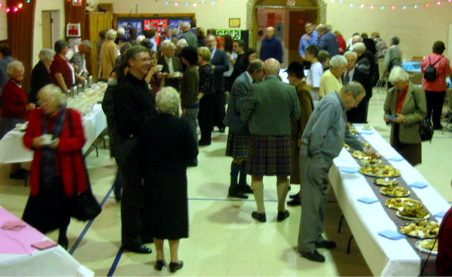 Summerlea en soirée le dimanche 28 novembre 2004. Le service a témoigné 186 années de ministère de St. Andrew's à Lachine et à Chateauguay, débutant en 1818 avec l'ouverture de l'église Presbytérienne écossaise de Lachine et de Chateauguay. Leslie et Keith Field ont ouvert le service en jouant à saxophone la pièce Pavane de Ravel. Ont fait des lectures le rév Ian Fraser (pasteur étudiant 1981-1982), rév. Glynis Williams (modératrice temporaire 1993-1997) et le rév Howard Clark de Summerlea. La rév Sheina B Smith, pasteur de St. Andrew's 1982-1993, a assisté au service de communion. Une vignette prière de Keith Field suivi de quelques vignettes du rév Darryl Macdonald, ont tracé l'histoire de St. Andrew's de la date de fondation en 1818, par le schism de l'Union en 1925 et la reconstruction par après, agrandissement après la deuxième guerre mondiale suivie de déclin, et le traumatisme récent du départ de l'autorité centrale Presbytérienne en support de Darryl. Ces vignettes ont en même temps souligné la reconstruction qui a suivi chaque défit, tel qu'arrive actuellement dans la union avec Summerlea. Avant de faire la lecture le rév Clark a mentionné qu'on avait découvert dernièrement au bureau de Summerlea le livre de procès-verbaux (Minute Book) qui avait été présentée à la session de l'église Presbytérienne Summerlea en 1914, ce qui nous rappelle les racines presbytériennes de Summerlea. |