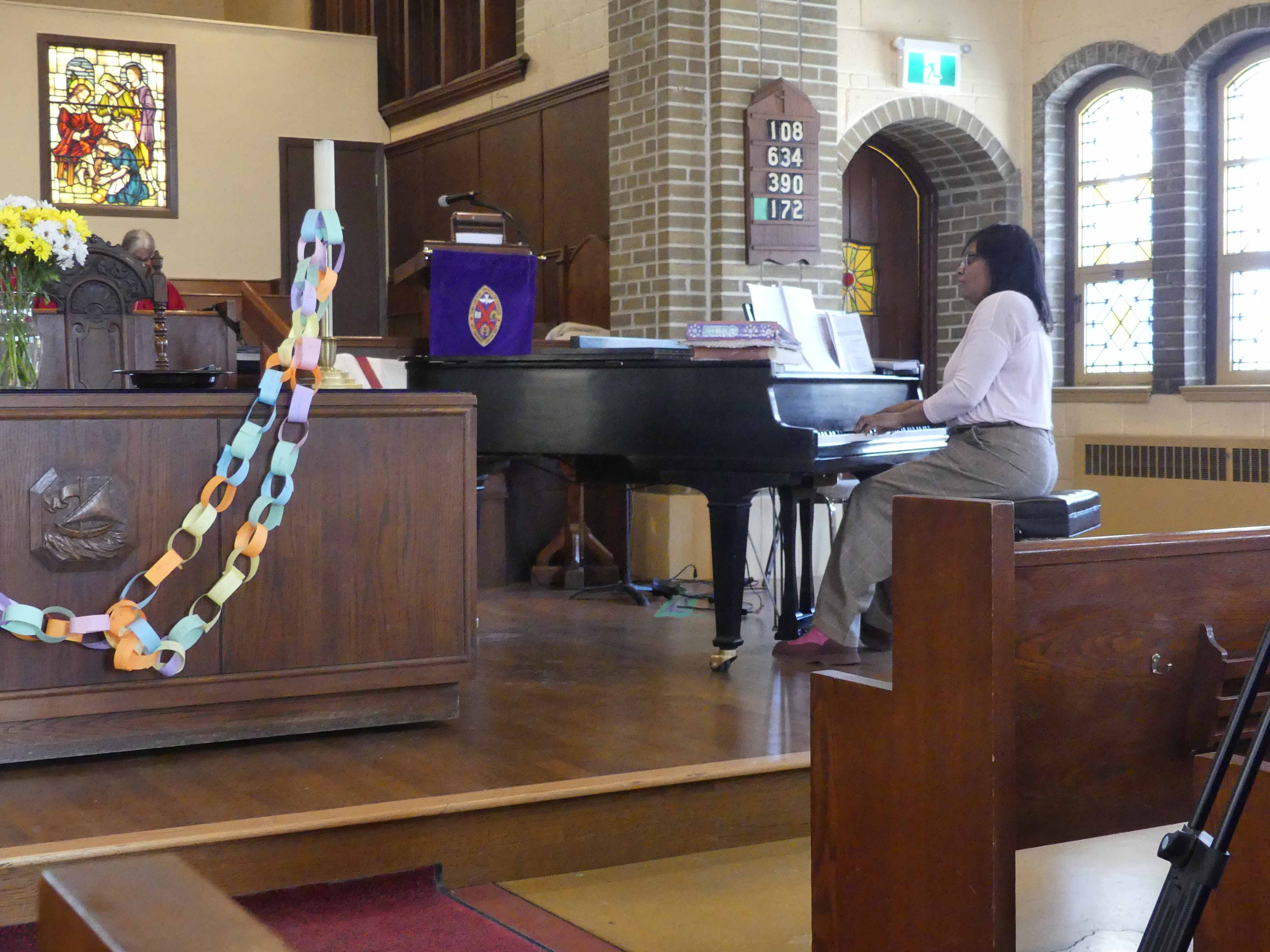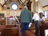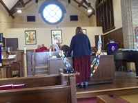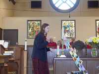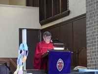 Come, walk among us, Holy Friend, As all are gathered and prepared, That scattered lives may meet and mend Through open Word and table shared. |