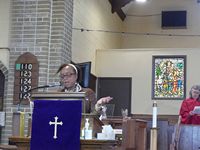 Somehow, I missed getting a pic of Lucia at the organ. So her she is at the "not-organ!" And managing to play beautifully with |