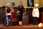 Le bouffon Erin Overbury, Page Alayna Roy et Chef Cassandra McKenzie ouvrent la pièce. |