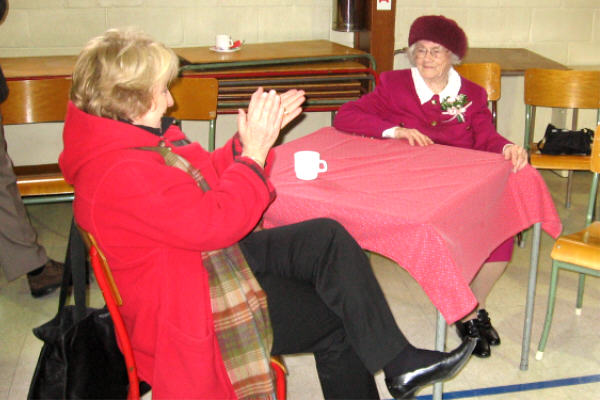 Thiérie, centre d'activités des aînés à Lachine et on l'a vue à la télé à 18h et à 23h. Le dimanche 19 mars l'assemblée Summerlea a fêté son anniversaire avec des rafraichissements au hall Acadia après le service. Les activités ont compris le chant "Happy Birthday", présentation de lettres de félicitations de la Reine Élizabeth II, du premier ministre du Québec Jean Charest, du Ministre local de l'Assemblée nationale Claude Dauphin, de la Thiérie et de l'assemblée Summerlea. Il y avait un cadeau du Groupe des trouvailles heureuses de Summerlea, deux gateaux, et la chanson "'Til We Meet Again" de la part du chur et de l'assemblée. Dans ses commentaires Lucy a mentionné que c'était maintenant le début du deuxième centenaire. Félicitations à une dame extraordinaire. Ci-dessous se trouvent quelques photos de l'événement. Elles sont cliquables pour voir une version plus grande. |