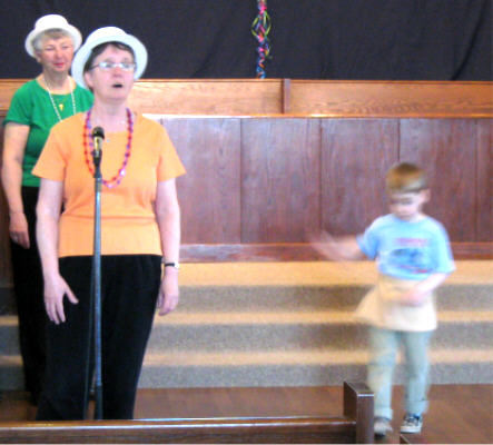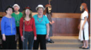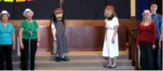 Howard Clark Philip Freud - Semeur, victime, voleur Marion Golden Mary Guynan Susan Ippersiel Meaghan Luttrell Cassandra McKenzie - Jésus, Bon Samaritain Michelle McKenzie - Levite Susan McKenzie - Leader Leslie McEwen Jeannine Morin John Osborne - Leader John Palmater - Nicodemus, prête Jane Percy David Pryce Dominique Reid Janet Smart Selga Vitols Directrice de musique: Connie Osborne Directeur de scène: Howard Clark Musiciennes: Lee Heppner - bass, Kate Miller - tambours, Ann Sutton - piano Costûmes, etc.: Kim Roy, Ann Trenholm, Elisabeth & Natalie Wightman Marionette et masques: Howard Clark, Tracy Fequette, Patrick and Philip Freud Videographer: Jacob Osborne On a fait les photos ci-dessous aux répartitions du samedi matin. Le dimanche, maison comblée pour les applaudir, les membres de la troupe furent encore plus brillantes, et tout le monde s'est très bien amusé. |