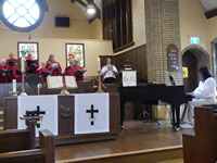 Here our children find a welcome In the Shepherd's flock and fold; Here as bread and wine are taken, Christ sustains us as of old. Here the servants of the Servant Seek in worship to explore What it means in daily living To believe and to adore. |